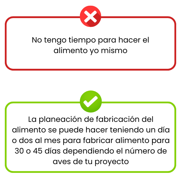 >> Productor de carne de pollo: La ganancia de peso del pollo es pobre, el alimento comercial escaso, no hay para la fase de vida del pollo que buscas, no tienen los aditivos necesarios o simplemente el costo es alto.